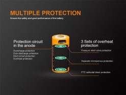 - Protection circuit built in the anode with a steel hat by riveting process. Steel shell eliminates the risk of short circuit caused by collision and impact.