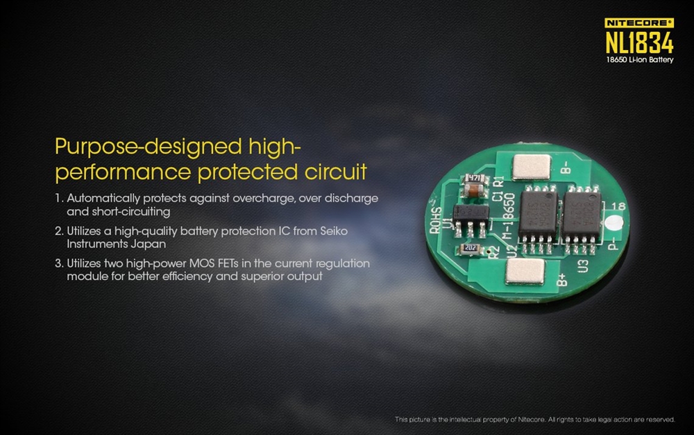 High performance rechargeable battery from Nitecore specially designed for high drain devices like Nitecore TM series and other high power LED search light and tactical flashlights.