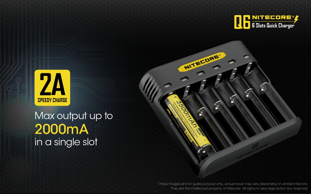 When you have go through a lot of batteries on a frequent basis, the NITECORE Q6 Six Slot Quick Charger is up for the task. Capable of charging up to six li-ion/IMR batteries at a time, the Q6 is compatible with many popular battery sizes including 18650, 16340, 14500, 18350 and more. A compact and slim body makes this charger ideal for both travel and daily home use.