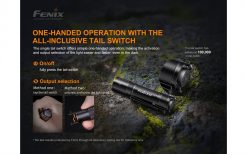 The anti-slip knurling on the aluminum alloy body provides for greater grip. No need to worry about this small flashlight slipping from your hands. An IP68 waterproof rating and 1.5 meter impact resistant rating ensures that the Fenix E12 v2 is tough enough to withstand any condition.