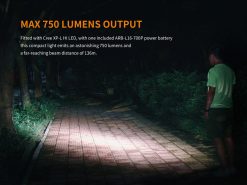 - Max output of 750 lumens with a max throw up to 148 yards