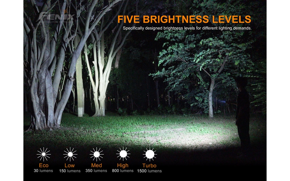 | Turbo | 1500 lumen | 2 hr 5 min |