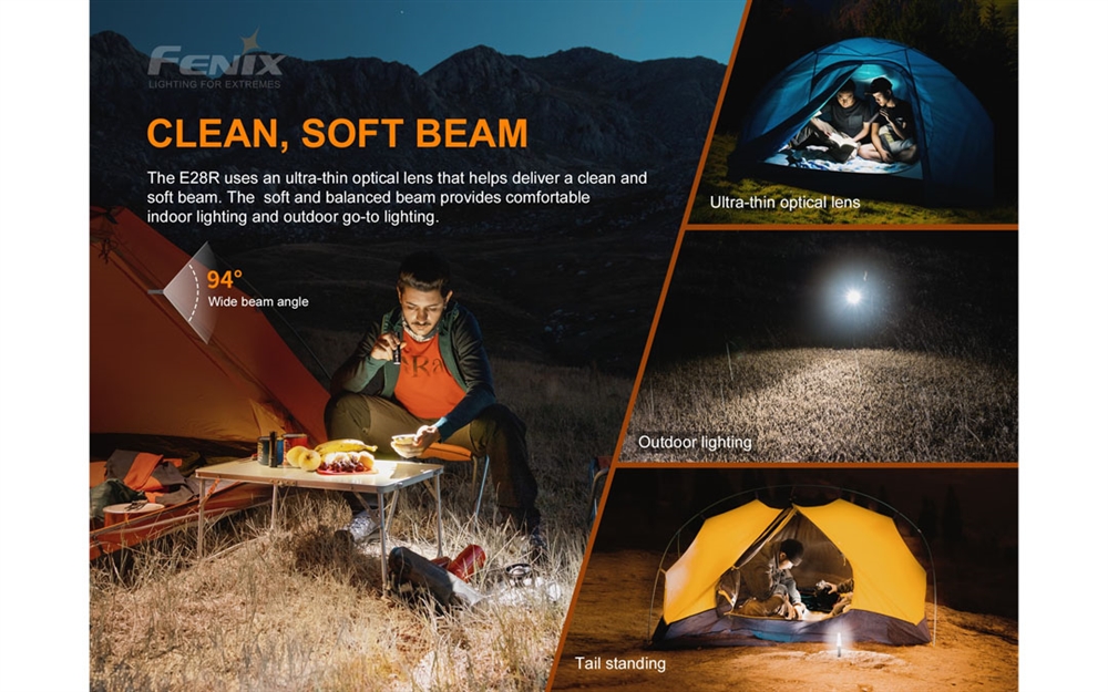 The Fenix E28R rechargeable flashlight throws a super bright beam up to 1500 lumens reaching over 218 yards. This powerful new flashlight is designed with everyday carry in mind. Measuring only 4.3 in length and weighing 2.3 oz, comfortably carry the E28R walking the dog, poking around the garage, or in your pocket ready for daily use.