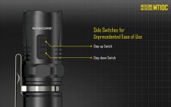 Carry light everywhere you go with the NITECORE MT10C super bright, 920 lumen, compact, tactical flashlight. The MT10C boasts a powerful red light suitable for outdoor applications that preserves night vision while hunting without attracting insects. The red light beacon serves as a signal light for emergency situations. It has 5 brightness levels with a maximum throw of 207 yards on Turbo and runtime up to 170 hours on Low.
