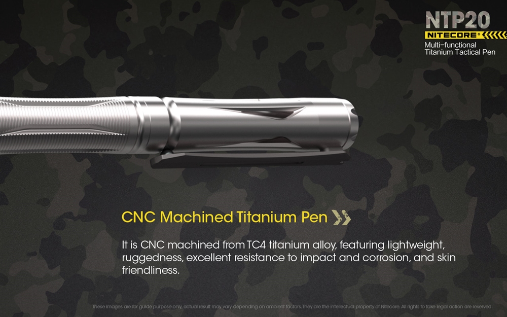 A streamlined clip allows you to easily attach the pen to your pocket, shirt, or backpack. Weighing only 1.33 ounces and measuring less than 6 inches in length, the sleek NTP20 is the perfect addition to your EDC gear.