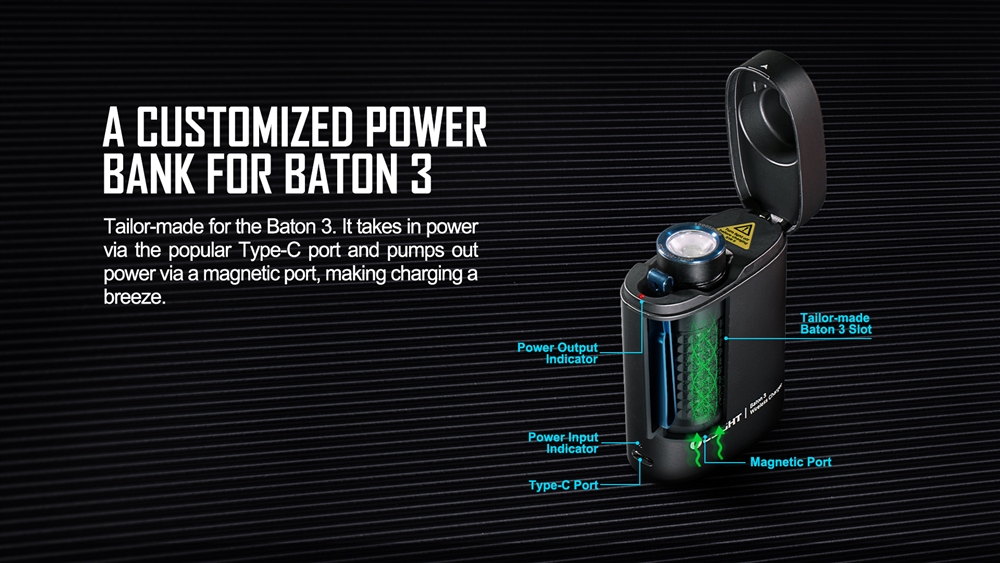 The Baton 3 Premium Edition comes with everything you need and more for your next great EDC flashlight. An included IMR16340 can provide up to 20 hours of runtime on a single charge. If the light runs out of juice, the Baton 3 comes with a stylish wireless charging case that can charge the Baton 3 – 3.7 times. Just drop in the Baton 3 and you have wireless charging on the go.