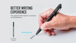 Olight OPen Pro is an elegant EDC pen that also comes with a bright flashlight and green laser pointer. Made of aluminum alloy, this pen is sturdy and rests firmly in your hand. Its stainless steel pen tip ensures smooth, effortless writing.