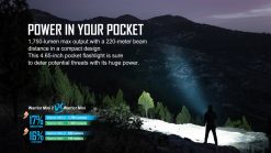 Olight Warrior Mini 2 is still Compact and EDC ready, the Warrior Mini 2 is capable of 1750 lumen max that reaches out to 240 yards in beam throw. The Warrior Mini 2 sports five brightness modes with a dedicated strobe mode. Its built-in proximity sensor automatically dims the light to prevent it from overheating. The Warrior Mini 2 is rated IPX8 waterproof to 2 meters and is drop safe up to 1.5m. You can trust this compact, high performance flashlight to get the job done in any environment.