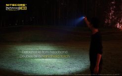 The NITECORE HC33 is a versatile high performance L-shaped headlamp. Utilizing a CREE XHP35 HD LED, the HC33 produces a scorching 1800 lumens output capable of reaching up to 204 yards away! The multipurpose L-shape design allows the headlamp to double as a handheld flashlight when removed from the included headband while the integrated magnetic tail cap and removable pocket clip provide hands-free mounting options for working or other activities.