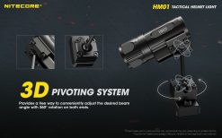 The Nitecore HM01 is a 320 lumen ARC rail tactical helmet light capable of 80 yards of a well diffused flood beam thanks to its TIR optic lens. Once attached to an ARC rail, HM01 can point to any direction by rotating its articulating arm.