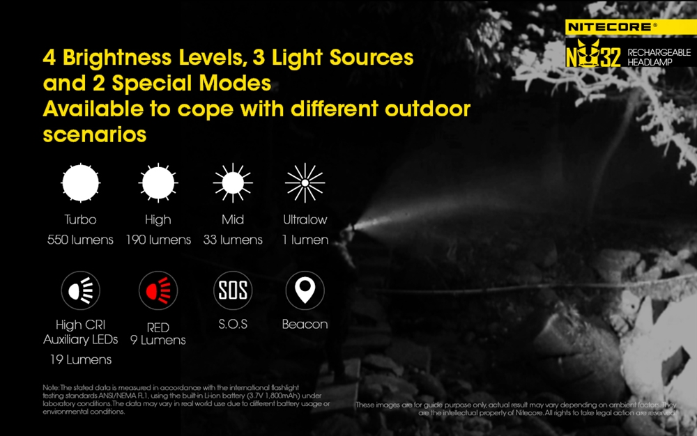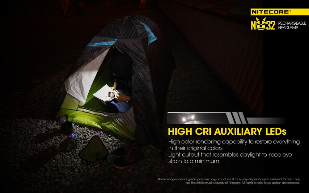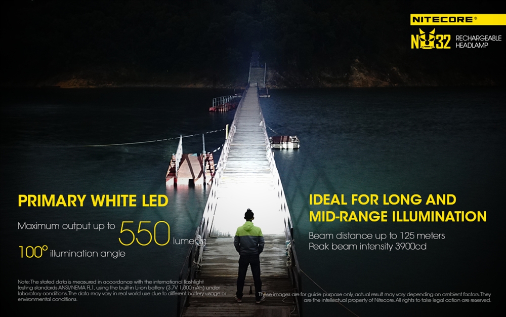 Packed with more power yet remaining lightweight, NITECORE NU32 rechargeable headlamp is a noteworthy upgrade from the highly rated NU30 headlamp. Equipped with a CREE XP-G3 S3 LED, the NU32 emits a bright 550 lumens for distances up to 136 yards on Turbo mode. Switch freely between a primary white LED, offering four brightness settings from 1 -550 lumens, to high CRI auxiliary LEDs for even flood illumination, ideal for close up tasks and reading. Alternatively, switch to the red auxiliary LED and protect your night vision.