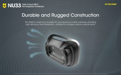 This NU33 is rated IP66 water resistant, features a bold new aerodynamic unibody design that efficiently dissipates heat and looks stylish to boot. The newly designed headband is skin-friendly and has large bright reflective strips to guarantee visibility and protection. 15% smaller than NU32, the lightweight NU33 takes the center stage as Nitecore’s new all-rounder headlamp for night running, outdoor adventures, or camping.