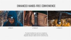 Use it as a headlamp with the included headband or as a right-angle handheld flashlight. You can even quickly detach the Perun 2 and use the magnetic base as a hands-free light source. Hold the side switch to activate your Perun 2 and click to switch between the 5 brightness levels.