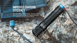 The Olight Perun 2 runs on an included 4000mAh 21700 battery and can last for up to 12 days on the lowest mode. With the included MCC3 magnetic charging cable, the Perun 2 is able to charge 33% faster.