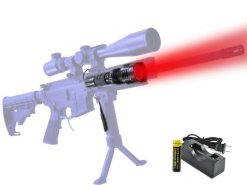This long range red hunting light leverage advanced red LED techncology from Cree. As it doesn’t use lens or filters, It produces 100% red light which allows you to see more clearly and farther. It comes with a pressure switch and one of three popular mounts for rail, scope and barrel mounting. It also comes with a rechargeable battery and a charger so you don’t need to worry about battery.