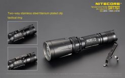 Package Contents: Nitecore SRT7GT Tactical Flashlight, Holster, Pocket clip, Tactical ring, Lanyard, Spare tail cap button, Spare O-ring