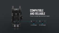 Olight Baldr S is compatible with most accessory rails. Controls are always right at your fingertips with the sliding rail adjustment putting the ambidextrous power switches next to your finger. The Baldr S has a quick release arm for easy installation, removal, and cleaning. Combining its durable construction with water and impact resistance, Olight Baldr S is an excellent accessory for military, law enforcement, and personal safety.