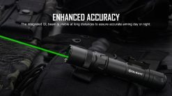The Olight Odin GL M is a light kit that has everything included to bring your platform to peak performance. At its core the Odin GL M is a powerful 1500 lumen max flashlight that sports a 235 yard max beam throw. Built-in to the reflector, is a bright green beam. The light has a built-in locking plate which can quickly attach and detach to the included canted m1ok rail mount. Additionally, the Odin comes with a locking magnetic dual-button pressure switch to provide the precise control of the light right at your fingertip. This sleek new package is a must have flashlight kit for everyone.