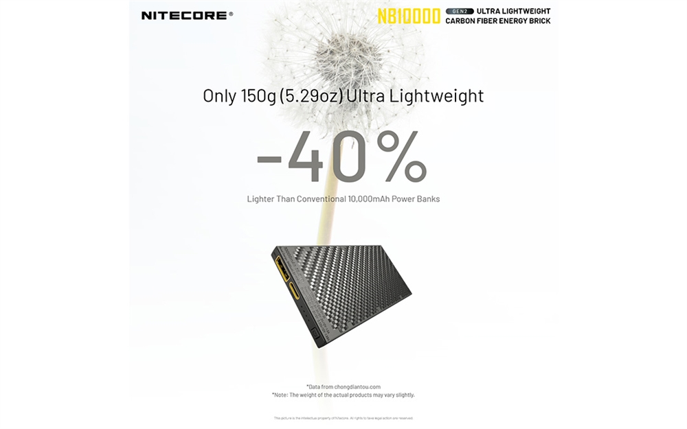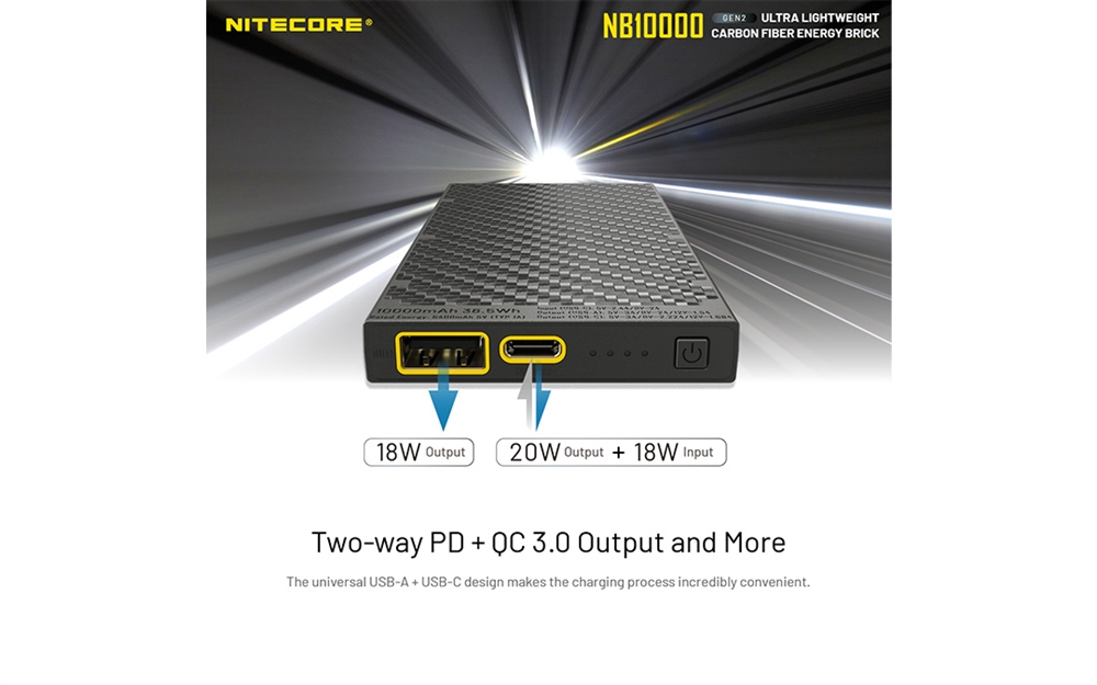 The popular Nitecore NB10000 is back with big improvements for the 2nd generation. The Nitecore NB10000 power bank has an extraordinary 10,000mAh battery that can charge an iPhone 11 or a Samsung s10 two times. Embodying all these power in a solid carbon fiber body frame, the NB10K is 40% lighter than conventional power banks, while smaller and thinner than a phone, with a sleek modern minimalist design. The NB10000 is the ultimate portable backup battery charger for road warriors, outdoor enthusiasts who enjoy trail running, hiking or camping, or first responders who are on an extended search and rescue mission. It is also a great additional to your emergency prep kit or bug-out-bag.
