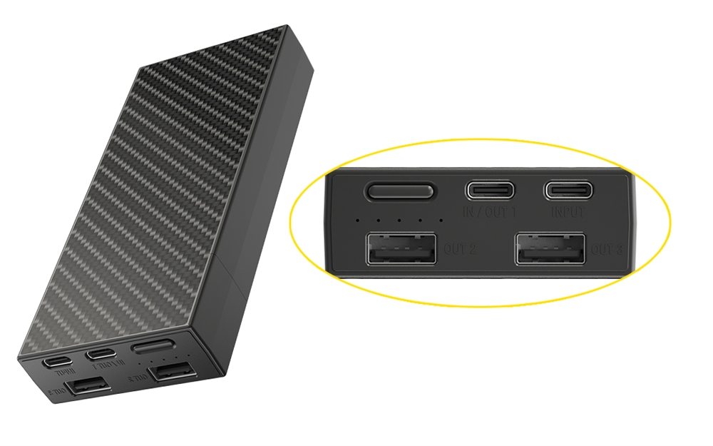 Its 3x USB/USB-C QC output ports are compatible with a variety of electronics and allow you to fast charge electronics. The USB-C output port has been upgraded to 45W making this the ultimate laptop/notebook companion charger. For delicate devices such as bluetooth headphones and smart watches, NB20k has a one-touch low current mode.