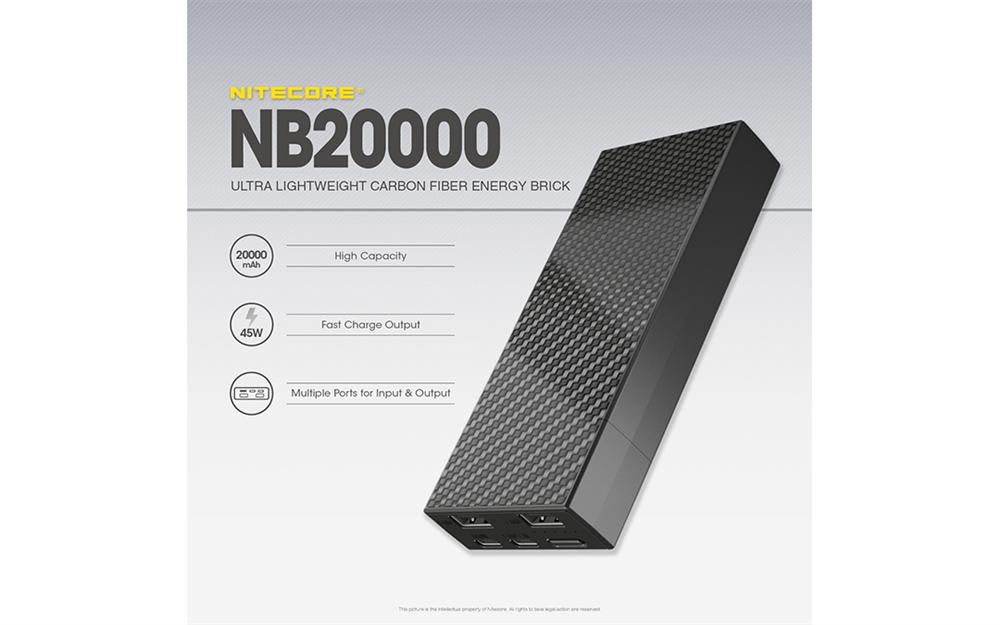 You electronics just got a new best friend! The Nitecore NB20000 power bank has an extraordinary 20,000mAh battery that can charge an iPhone 12 six times over! Embodying all this power in a solid carbon fiber frame and case, the NB20K is 27% lighter than conventional power banks, and compact enough to slip right into your pocket, with a sleek modern minimalist design. The NB20k is the ultimate portable backup battery charger for road warriors, outdoor enthusiasts who enjoy hiking or camping, or first responders who are on a long search and rescue mission. It is also a great additional to your emergency prep kit or bug-out-bag.