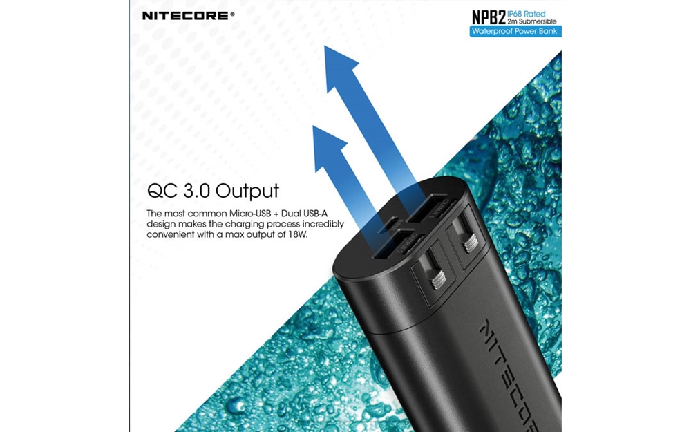 The Nitecore NPB2 power bank is your ideal power solution for outdoor activities and everyday carry. IP68 rated and waterproof up to 2m, with 1m of drop resistance, NPB2 can take a splash or an accidental drop when you are running, hiking, trekking or kayaking. Carry the NPB2 with confidence, no matter where you go.