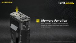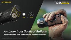 The TM20K has a rechargeable 9600mAh Li-ion battery built-in. The TM20K is USB-C rechargeable, and comes with a charging cable included. It is even capable of quick charge (QC) technology to speed up the charging process. When the light is connected to a QC power source, the battery status indicator will blink rapidly and the light will be fully charged in 4.5 hours. Finally, the TM20K comes standard with all of the advanced features you expect on NITECORE flashlights such as IP68 rated waterproof, advanced thermal regulation, mode memory, and lockout mode.