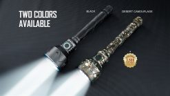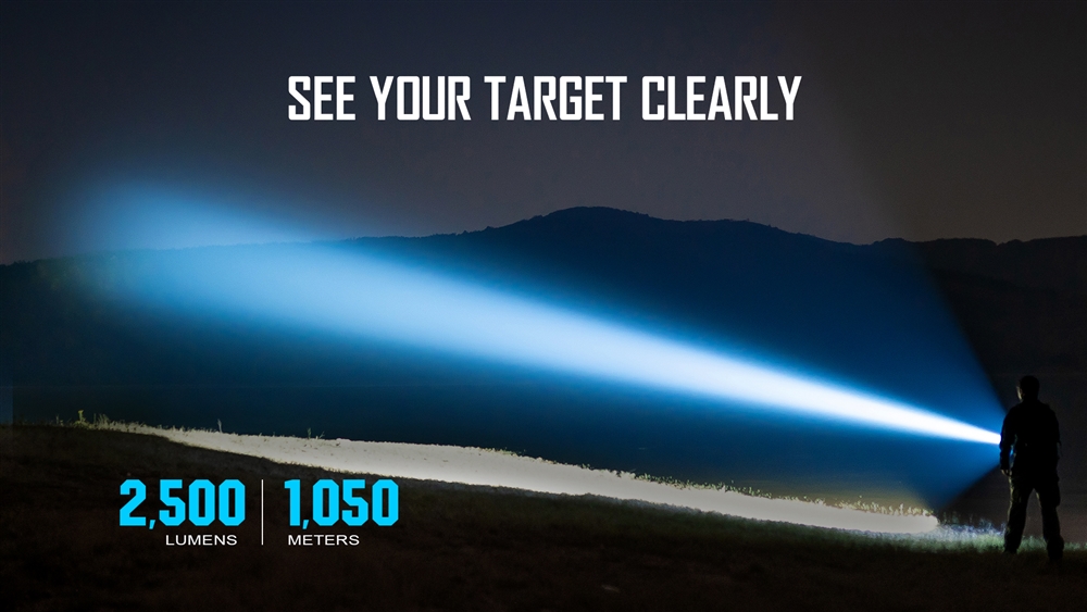 Olight Javelot Pro 2 can be your go to long throw flashlight for handheld search and rescue or platform mounted hunting. Upgraded to an impressive 2500 lumen cool white focused beam that reaches up to 1148 yards. That is more than 11 football fields! The durable aluminium alloy construction as well as IPx8 waterproof rating makes the Olight Javelot Pro 2 an ideal outdoor long throw flashlight.