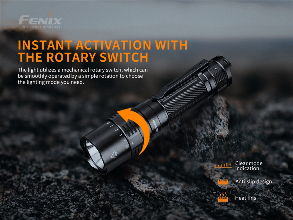 The PD40R v2 comes with a mechanical rotary switch smoothly transits among four different brightness levels and the strobe mode without worrying about magnetic field interference or accidental activation.