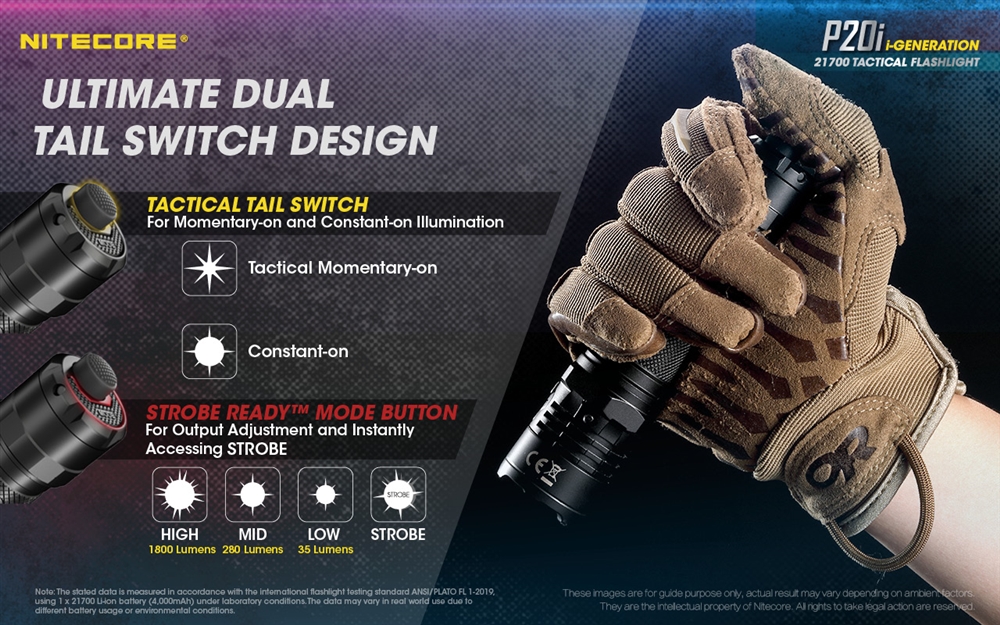 The NITECORE P20i is the ultimate high performance tactical flashlight, emitting up to 1800 lumens with a max throw of 375 yards. Designed for law enforcement and military situations, this torch comes equipped with a non linear strobe and an ultra strong strike bezel. Non-linear strobe patterns cause enhanced dizzying effects, highly effective for diffusing a tense situation.